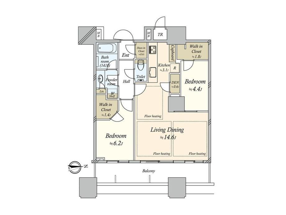 専有面積69m2(20.87坪)(壁芯)