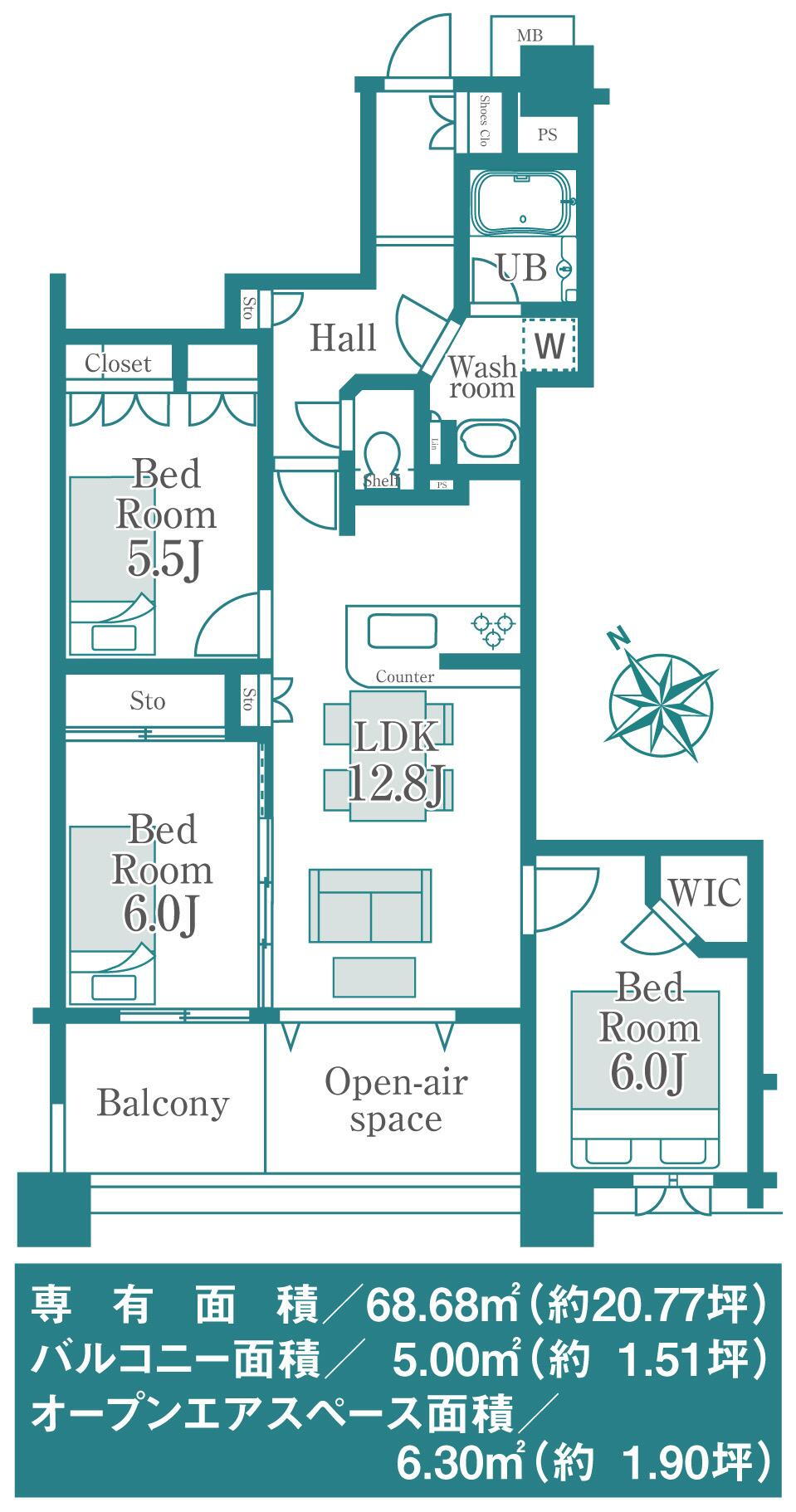 専有面積68.68m2(壁芯)