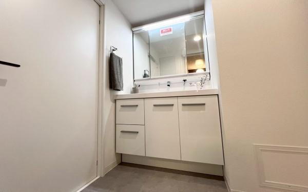 《洗面化粧台》 ■メイク道具や化粧水など細々としたものもすっきり収納できる洗面台