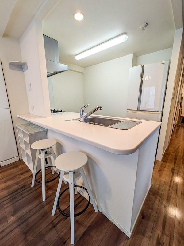 デザイン性の高いフラットカウンター。すっきりとした印象で、空間を広く見せます。