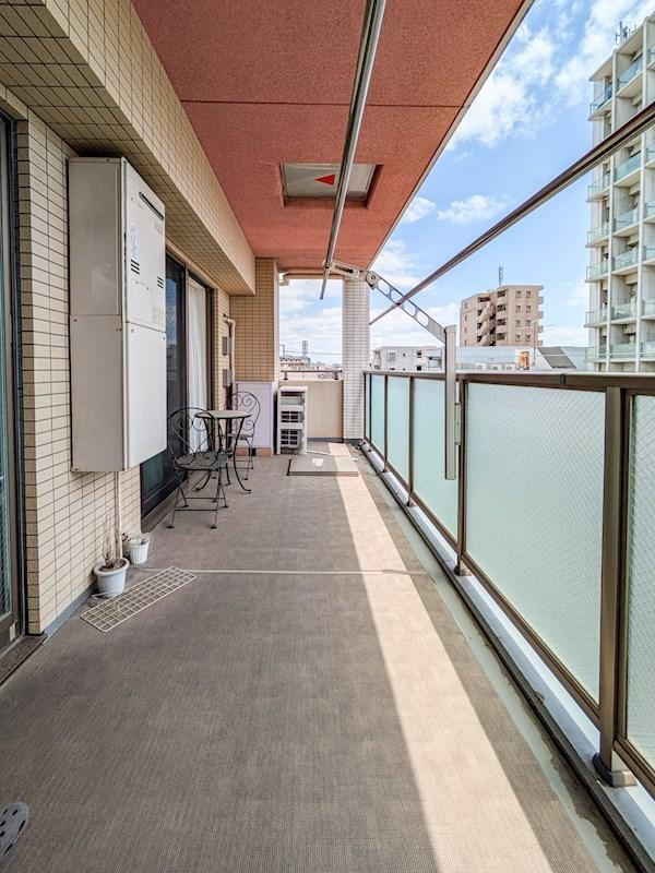 南西向きのバルコニー。陽当たりが良く、約2mの幅でゆとりの空間です。
