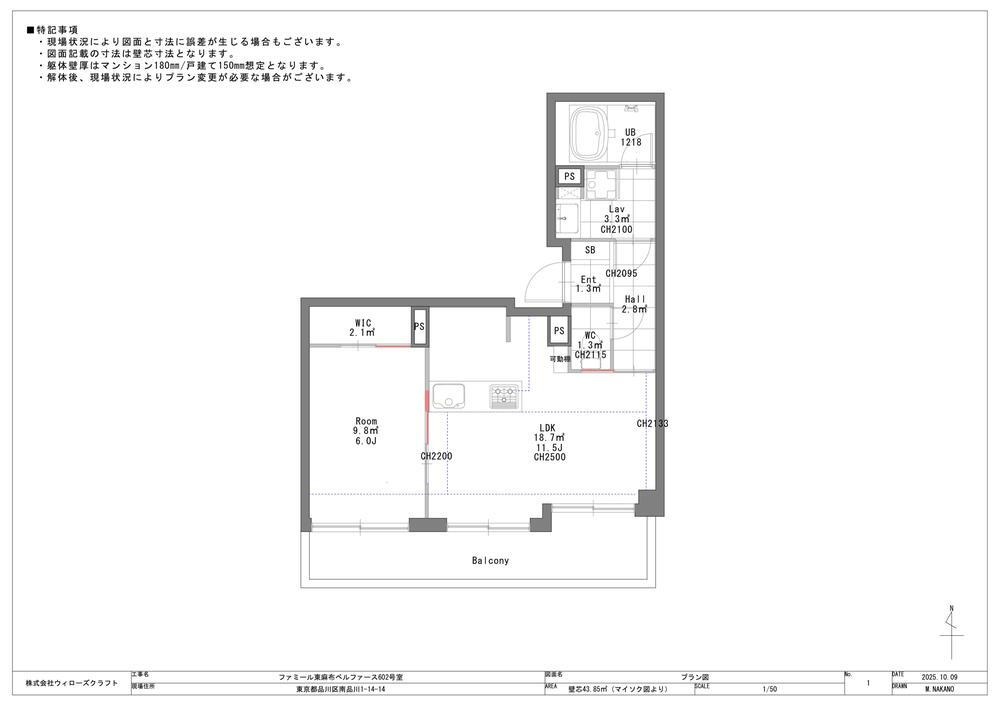 専有面積43.85m2(壁芯)