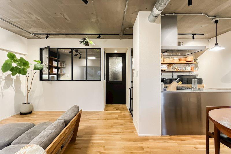 ■躯体現しの天井、無垢材の床、オールステンレスのキッチン。広い土間にはロードバイクやアウトドアのアイテムを、大きな収納には増えていく家族の思い出をまるっと詰め込んで。都心のアクセスと内装の質感を大事にしたい人に送る、とっておきの選択肢です。□最寄り駅は、都営大江戸線「中井」(徒歩5分)。西武新宿線「中井」と「下落合」(両駅徒歩6分)や東京メトロ東西線「落合」(徒歩8分)も利用できるほか、新宿・池袋・中野など主要駅まで自転車で行きやすい距離感で、電車のみに縛られない軽やかな移動が叶う立地です。□LDKに隣接する室内窓付きのワークスペースや大きなWICなど、暮らしやすさを考えた間取りも注目です