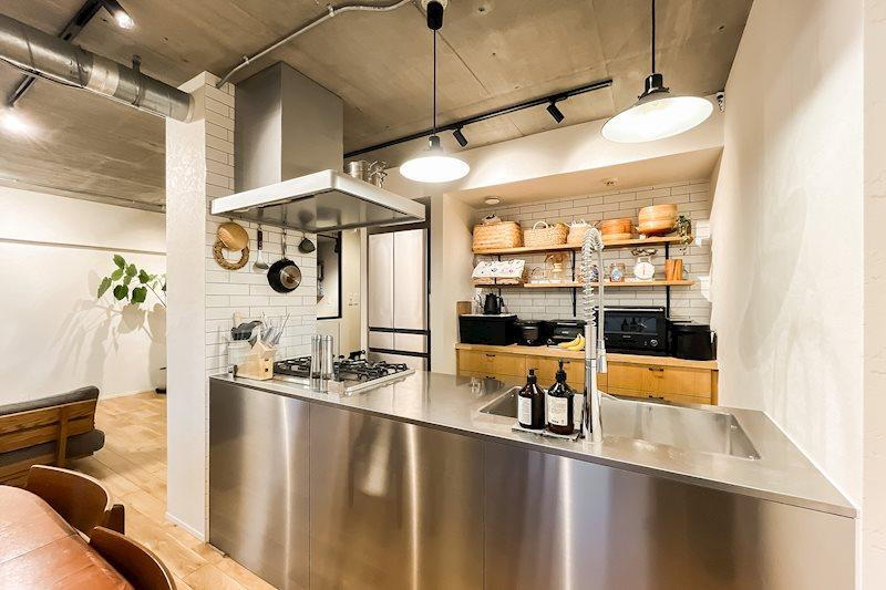 キッチン/キッチンはステンレス風素材のカッコいいデザイン。