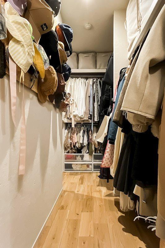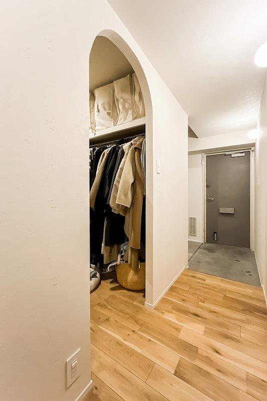 内観/廊下のアールの開口の奥には巨大なウォークインクローゼット(WIC)があります。