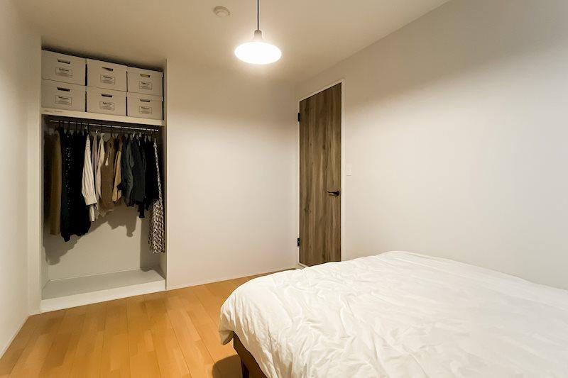 約7帖の洋室B/洋室は共用廊下に面する北向き。ベッドのほかにも、小さな家具を置ける広さです。