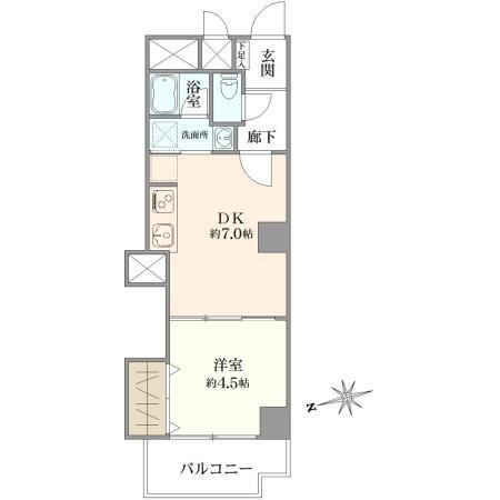 1DK、価格2280万円、専有面積31.84m2、バルコニー面積4.51m2 間取り図