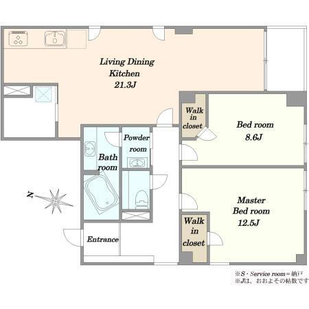 2LDK、価格2億1000万円、専有面積93.08m2 間取り図