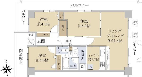 3LDK、価格2200万円、専有面積66.73m2、バルコニー面積25.76m2