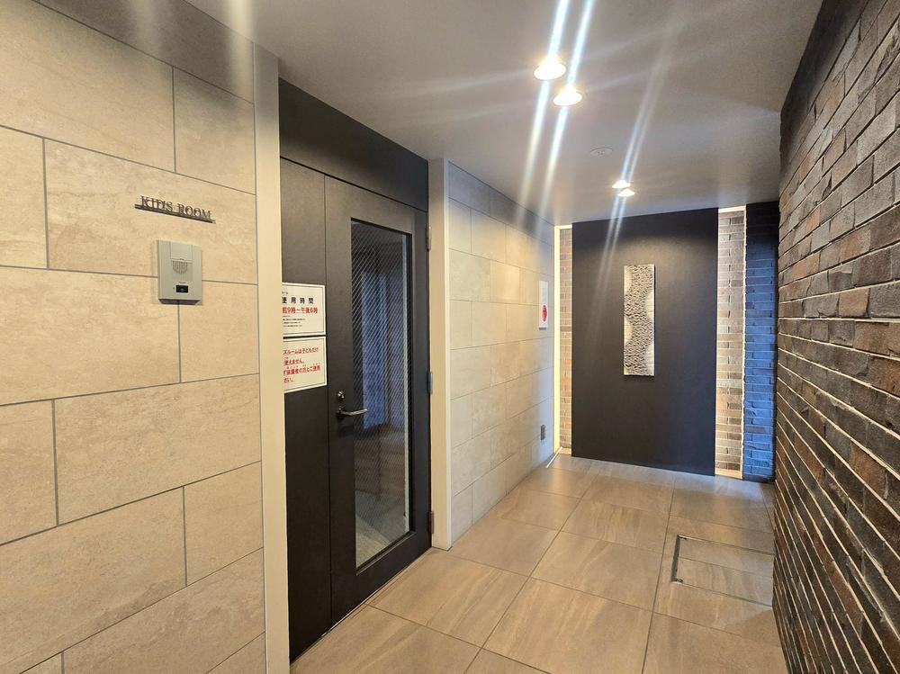 キッズルームは1階ロビー横部分にご用意(使用規約あり)。共用部(2025年10月)撮影