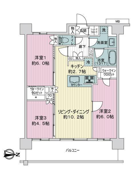 3LDK、価格5798万円、専有面積64.97m2、バルコニー面積13.14m2