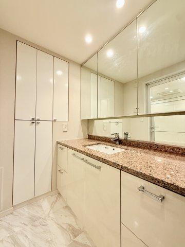 三面鏡裏や壁面に収納あり!