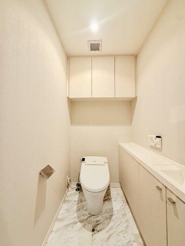 手洗い水栓付き!吊り戸棚や壁面に収納あり!洗浄機能付き!