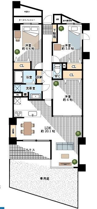 3LDK、価格4330万円、専有面積84.16m2、バルコニー面積5.73m2