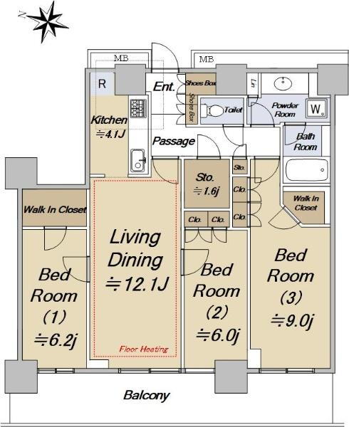 3LDK、価格1億2480万円、専有面積88.39m2、バルコニー面積18.85m2