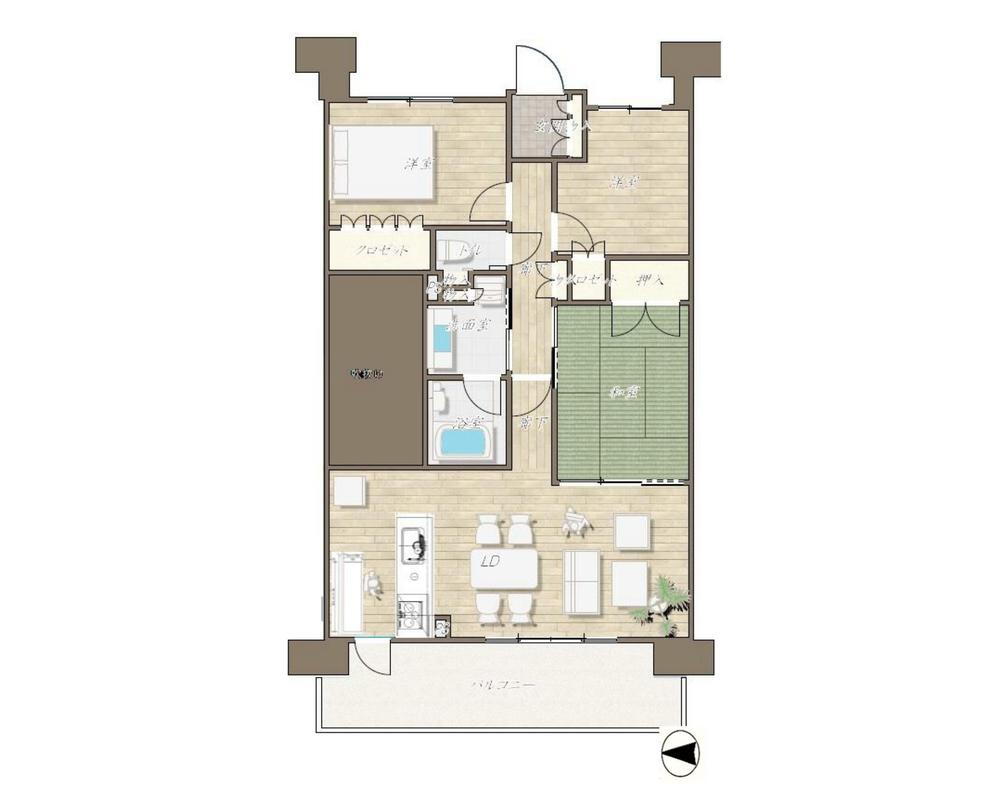 3LDK、価格5180万円、専有面積72.9m2、バルコニー面積14.6m2
