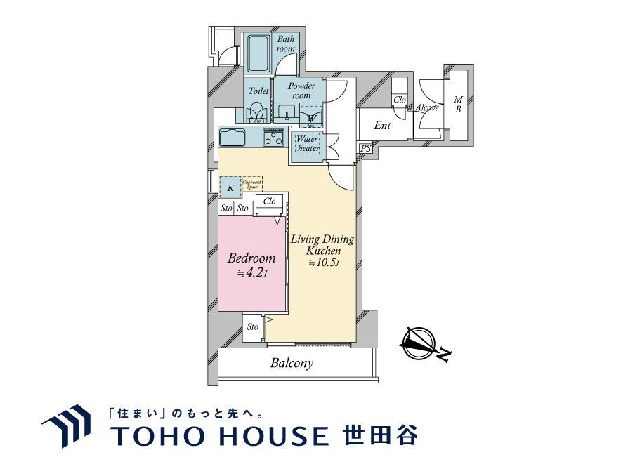1LDK、価格9999万円、専有面積43.44m2、バルコニー面積5.25m2