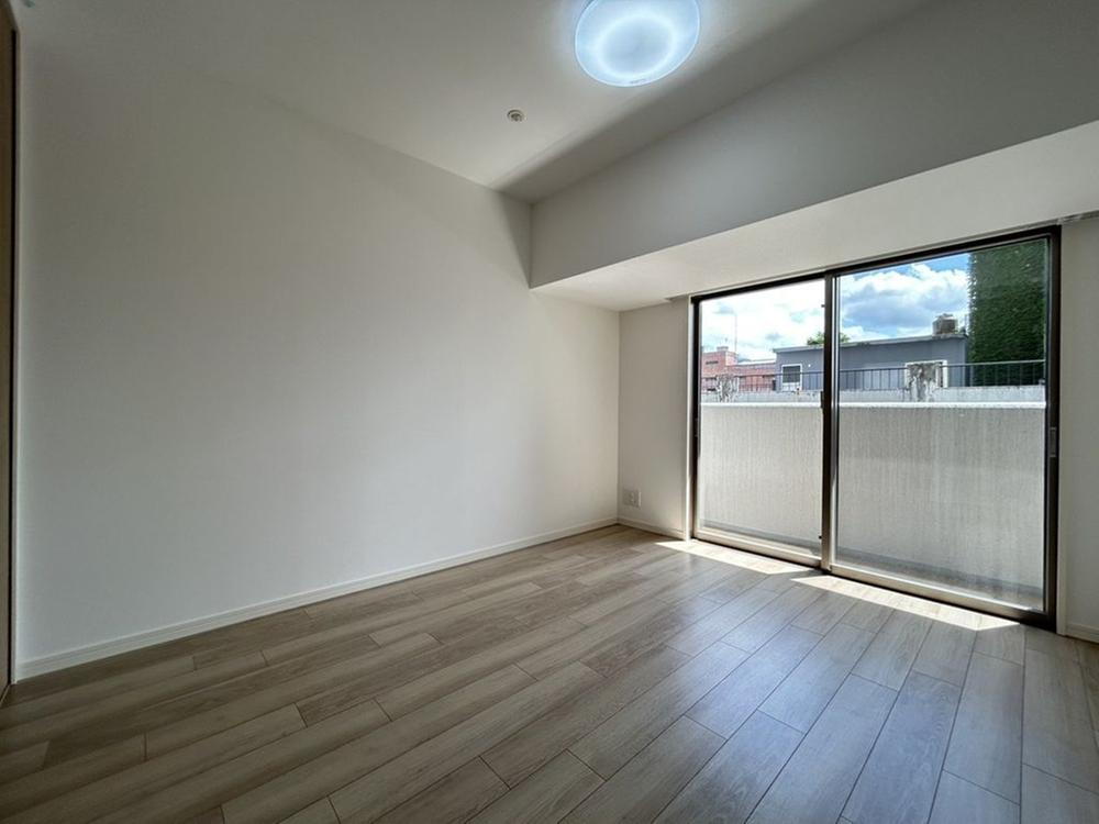 大きな掃き出し窓から陽の光が差し込む明るい居室です。 -