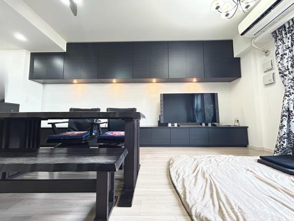 18帖超の開放的なリビングには便利な大容量収納!片付けやすく美しい空間をキープできます♪