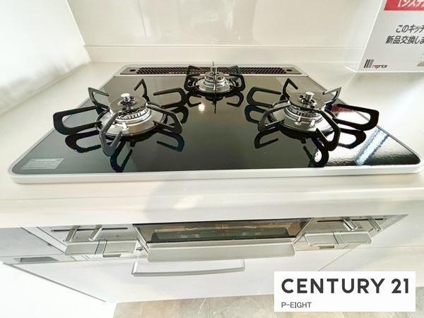 三口ガスコンロで料理もはかどりますね!グリルもあります!