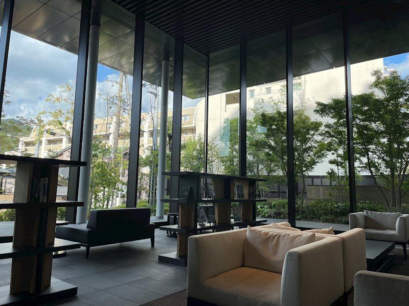 壮大な高原ホテルを彷彿とさせるエントランスホールは、全面ガラスウォールから緑豊かな景色が広がる、光と開放感に満ちた空間。上質なソファと洗練されたデザインが、居住者やゲストを優雅に迎え入れます。