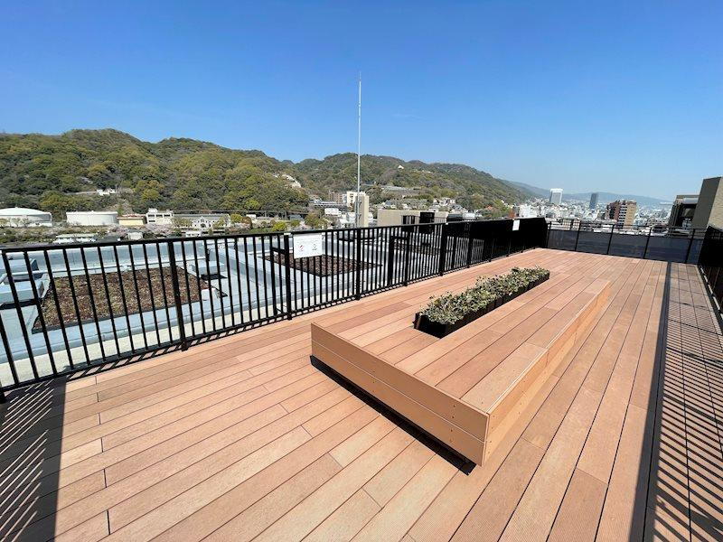 居住者専用のスカイデッキは、広がる青空と雄大な山々を一望できる特別な場所。ウッドデッキで陽光を浴びてリフレッシュ。夜は星空を独り占めし、心安らぐ上質なプライベートタイムを過ごせます。