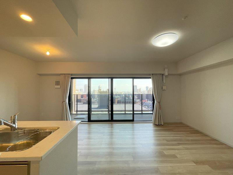 広々としたリビングダイニングは、大きな窓から差し込む陽光と、広がる開放的な眺望が自慢です。都心の景色を望みながら、心地よい自然光のもとで過ごす時間は格別。夜は街の明かりが美しい夜景を演出します。