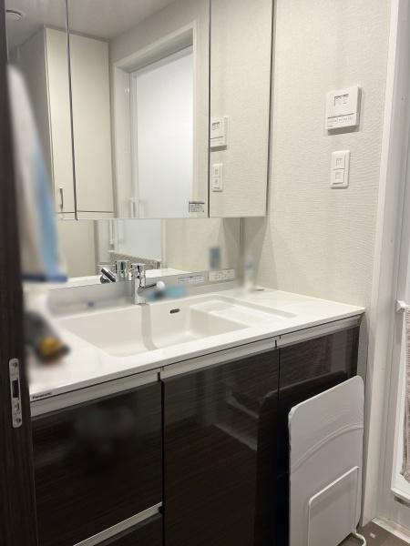 【洗面所】大きな三面鏡でご家族と共有しての使用も可能です