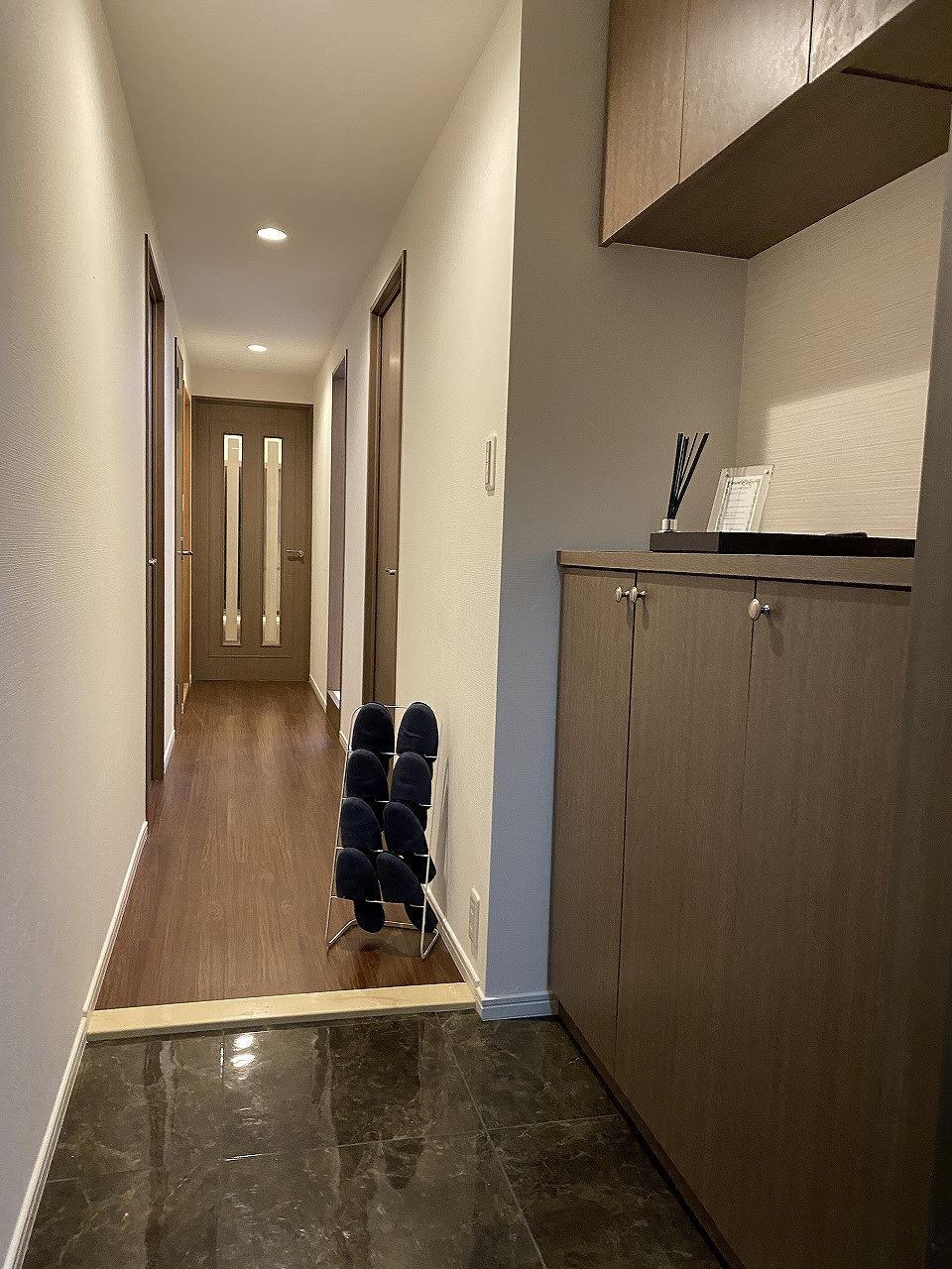 【玄関】シューズクローゼットでお靴や雨具などの収納もばっちり。訪問があった時もいつもきれいな玄関でお出迎えができますね。[2025年8月18日撮影]