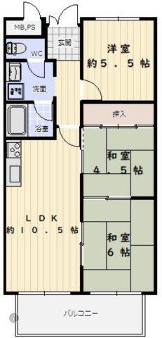 3LDK、価格980万円、専有面積54.26m2、バルコニー面積5m2 洋室1部屋+和室2部屋♪