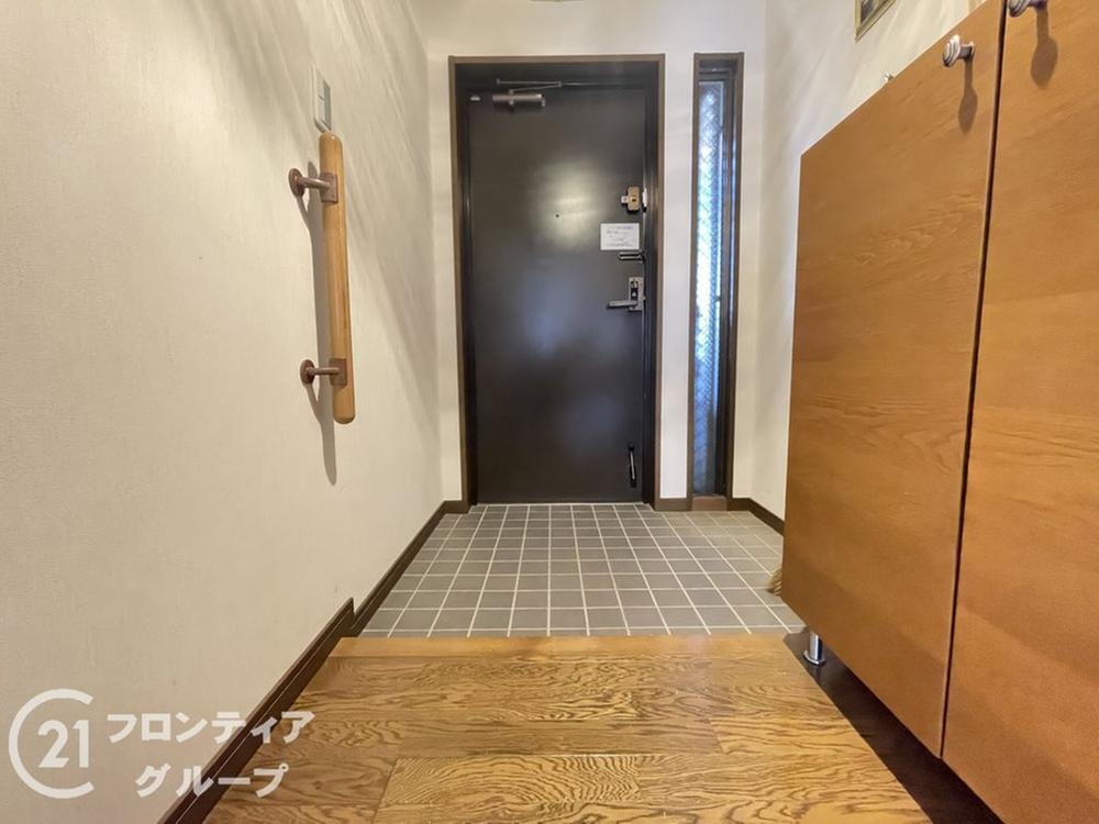 シンプルで落ち着いた印象のマンション玄関。外からの視線を遮り、プライバシーを守りながらも、ゆったりとした空間設計で出入りしやすく、毎日の暮らしを快適にサポートします。