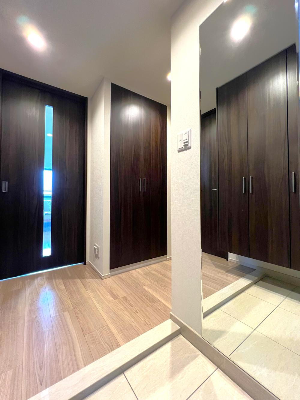 すっきりと広々とした玄関。正面にはワイドな収納を設置し、アウトドア用品や掃除用具などもスッキリ片付き、常に美しい玄関をキープできます♪