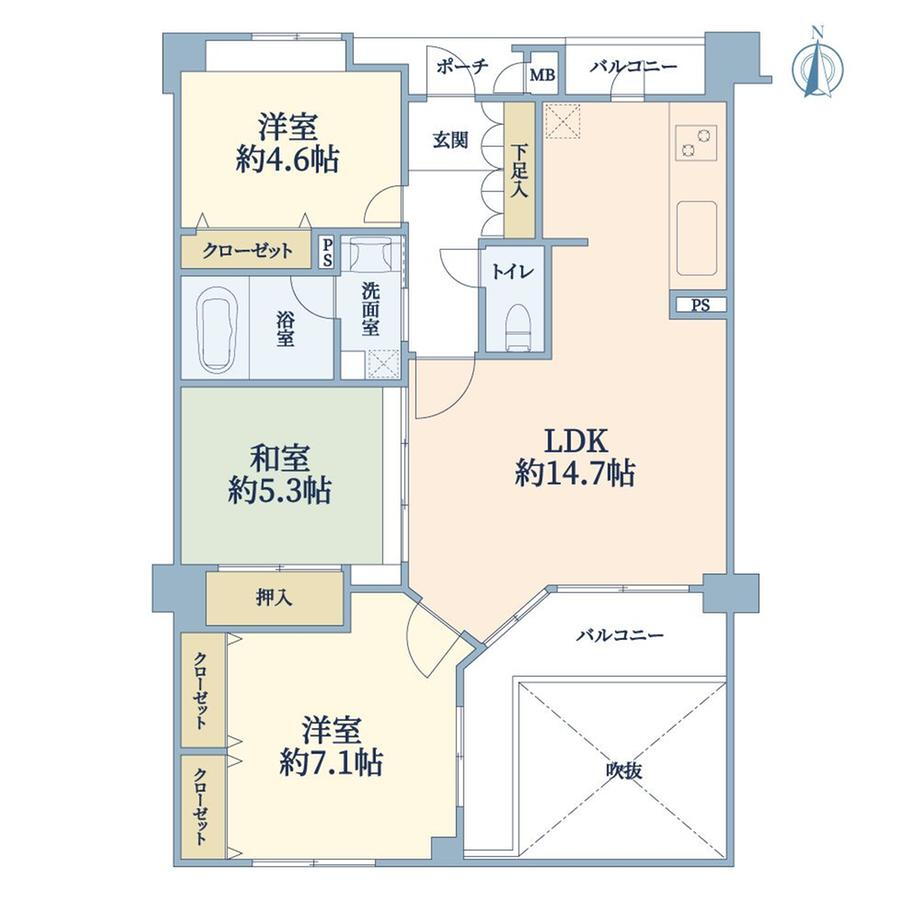 3LDK、価格4980万円、専有面積70.28m2、バルコニー面積7.07m2