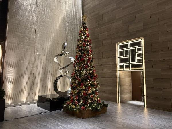 グランドエントランスには、季節柄、クリスマスツリーが飾られています。(2025年12月撮影)