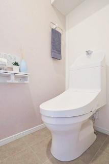 TOTOのトイレに新品交換済みです。清潔で快適な温水洗浄便座を採用しています。 -