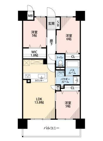 3LDK、価格2880万円、専有面積67.78m2、バルコニー面積11.16m2