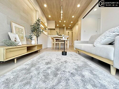 【リビング・ダイニングキッチン:11.3帖】暖かな日差しが差し込む明るいリビングで、快適なマンションライフをお過ごしください?