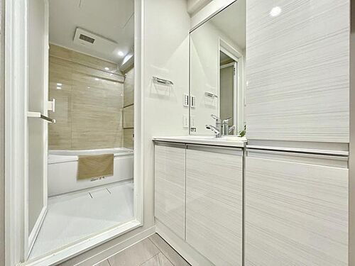 【洗面所】 日用品のストックも大容量収納できる便利な収納スペースつき