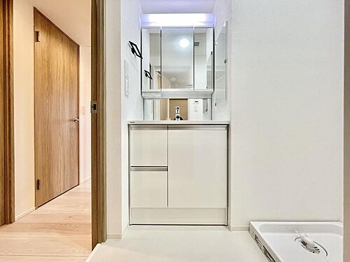 【脱衣所】収納充実の洗面台。日常使いの歯ブラシなどもしまえるので、スッキリと清潔感を保つことができます