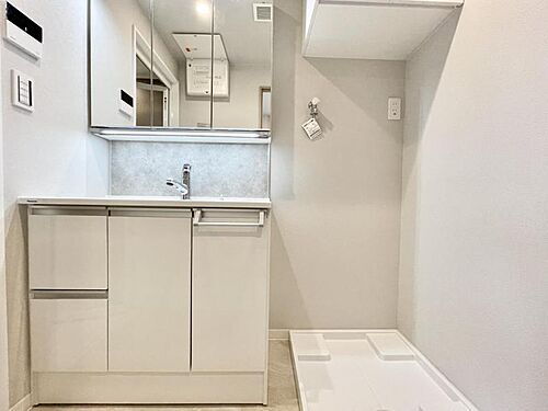 【洗面所】 洗面台と洗濯パンが並ぶ洗面所は、家事動線が整った頼れる場所。忙しい朝もストレスフリー。