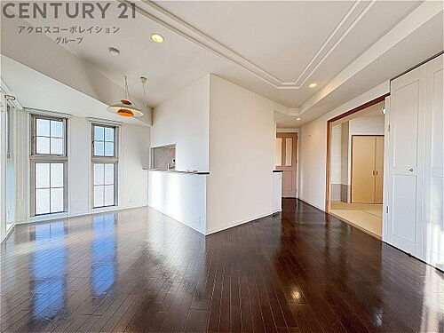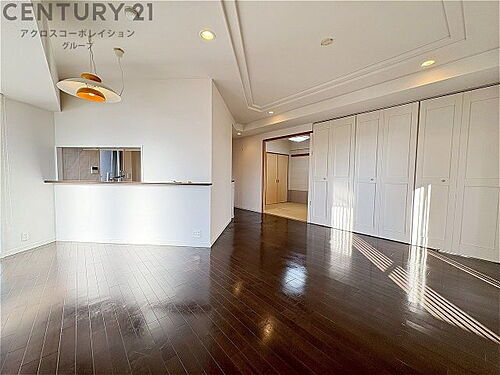 キッチン前のダイニングスペース カウンターキッチンから料理の受け渡し等に便利です。ダイニングセットを置いても十分な広さを確保。