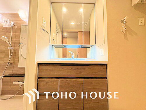 大きな洗面鏡付き!朝の身支度も楽しくなりますね