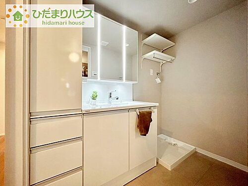 ワイドな独立洗面台には、ちょっとしたスキンケア用品などを置くのにも便利ですね(^^)