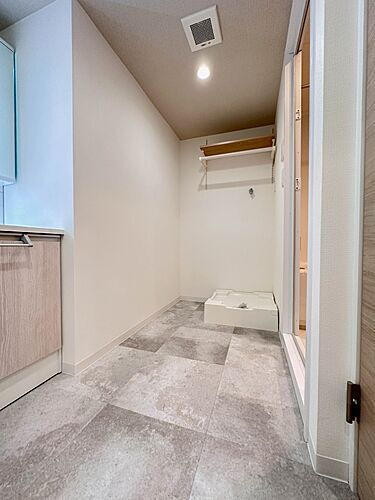 【脱衣場】脱衣所、洗面所は小さなプライベートスペース。歯磨き、洗顔と毎日施す個人空間。換気も設置して、熱気などを開放して、爽やかなスペースになるように設計されています。