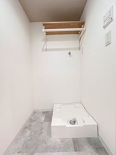 【ランドリースペース】毎日使う洗濯機。しっかりと奥行きのある置き場が確保されています。