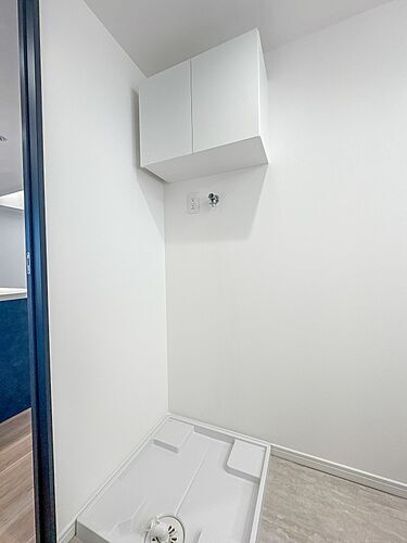【ランドリースペース】毎日使う洗濯機。しっかりと奥行きのある置き場が確保されています。