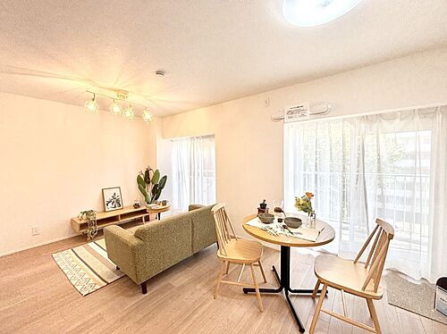 大きな窓からたっぷりの陽光と風を感じられるリビング