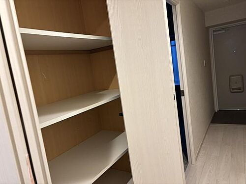 シンプルなデザインの収納スペースです。使い勝手の良い空間です。