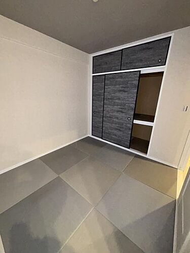 落ち着いた色合いの畳が印象的な和室です。収納スペースも充実しており整理整頓に役立ちます。