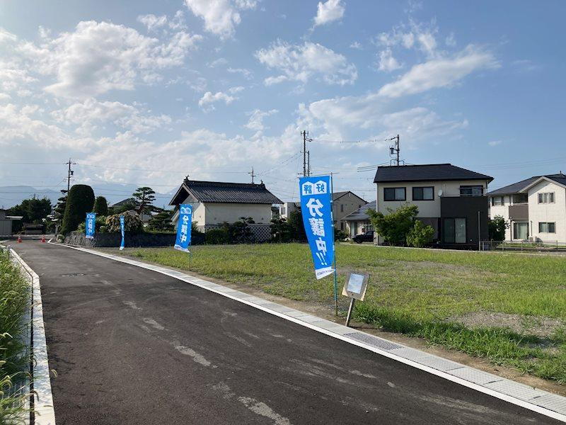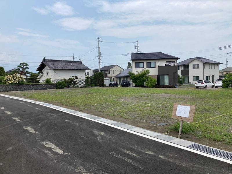 分譲地全景です。前面道路幅は約5mありますので、バックの苦手な方も、車庫入れラクラクです!